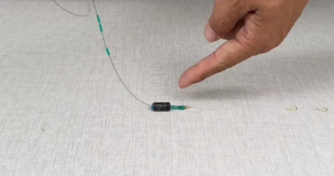 那么你钓鲤鱼的话,适当把这个子线放到20公分。如果你要钓草鱼的话,甚至要把这个子线放到1米甚至1米以外,让这个子线在水中有一个动态的过程。