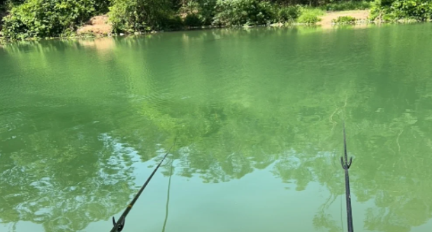 根据水草的长度来选择鱼竿,不需要隔太远,能打到草头上就可以,这个位置在它周围一圈就是最好的位置。