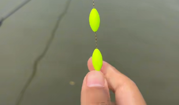 找到水深后就下拉两个子线的长度,就是把漂豆下拉三四十公分,这样做的目的和台钓调漂是一样的,下拉漂豆就是为了确保铅坠跟鱼钩在离底的状态。
