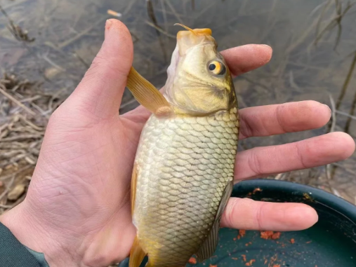 其实这里有个知识点经常被大家忽略,商品饵钓鲤鱼钩子小一点也能用,但用玉米会占掉一部分的范围,只要钩尖到钩底中心点,这一部分没完全暴露出来,就很容易脱钩跑鱼。
