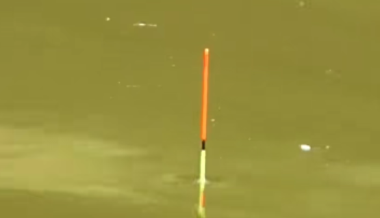 接下来拉上两颗饵料,看看这两颗饵料能不能将刚才带钩调的3目压入水中。如果浮漂被完全的压入水中,接下来每一杆都带上两颗饵料,上推浮漂去找底。