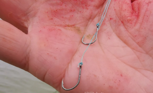不带钩,我们调平水,挂上子线、双钩和饵料以后,再钓三到四目,水底的状态是八字环触底,子线是横躺。但是需要注意一点,子线不能太长,8到10公分左右就可以了。