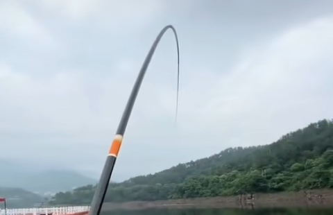 2、横杆溜鱼就是在鱼线绷紧的状态下,要尽量让杆子和鱼平行,降低两者之间的夹角。