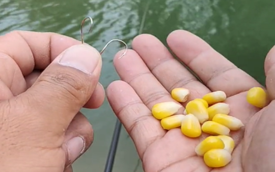 玉米有老玉米、嫩玉米,一般嫩玉米用的比较多一点,主要就是钓浮或者是一钩钓底,一钩钓浮。但是用嫩玉米去钓千万不要傻等,频率一定要跟上,最好是配上长子线和行程漂,不过时不时的还要用打窝勺去补一点嫩玉米。不过补窝的玉米要用手把汁水捏出来,这样玉米在飘落的过程会比较慢,诱鱼效果会更好一点。