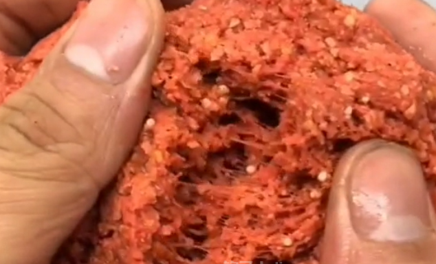 你捏一下这个饵料又不硬,感觉还是很软绵,好像状态很好,但是就是拉不起来,这就是饵料返水的问题。国产饵料大部分有这种特性,抗干扰能力很差,状态保持不持久。